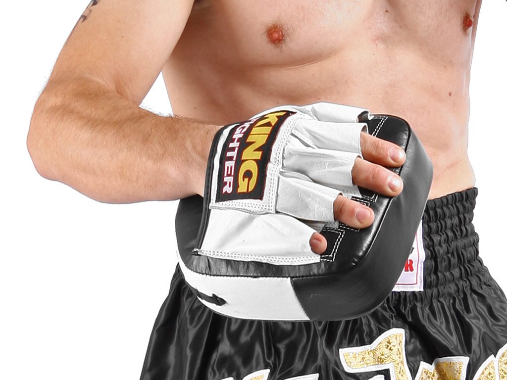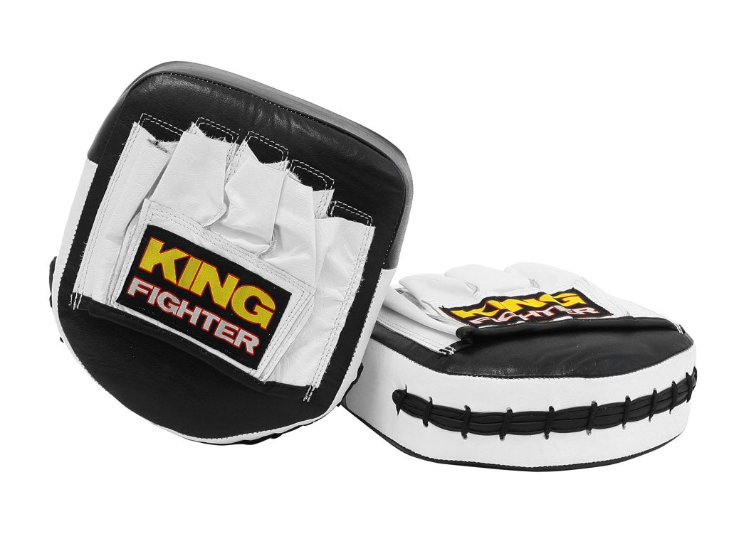 Klasické boxerské lapy King Fighter pro boxerské lapování. Lapy v bílo černém provedení. Pro větší přesnost úderů mají lapy na úderové ploše logo King Fighter místo terčíku. Na ruku se lapy navlékají do rukavice, která pevně obejme vaší ruku a po pár trénincích se jí přizpůsobí. Lapa na ruce sedí velmi pevně. Díky malé váze jsou určené pro rychlé a přesné lapování.