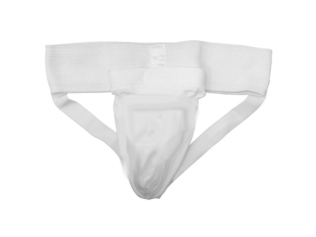 Suspenzor pro děti v bílé barvě. Dětský suspenzor pro nejmenší bojovníky. Používá se nejen při tréninku bojových sportů - krav maga, box, kickbox, thajský box, karate, judo, taekwondo, ale i v hokeji, baseballu a dalších sportech. Suspenzor je pohodlný a bez problémů drží na svém místě. Suspenzor se skládá z látkového obalu a samotného plastového chrániče. Chránič lze vyjmout a suspenzor vyprat. Elastické a pohodlné gumy zajistí správné uchycení a funkci chrániče