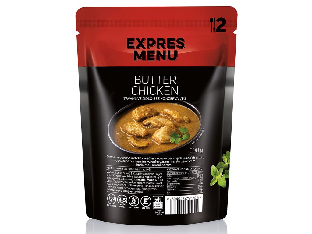 Jemná smetanová indická omáčka s kousky pečených kuřecích prsou, vychucená originálním kořením garam masala, zázvorem, kurkumou a koriandrem. Skvěle chutná s basmati rýží. Poctivé, plnohodnotné jídlo vařené od základu z kvalitních surovin a bez chemie. Trvanlivost až 10 let. Složení kuřecí prsa (33 %), rajčata krájená [rajčata (60 %), rajčatová šťáva, jedlá sůl, regulátor kyselosti: kyselina citronová], smetana, máslo (7,2 %), cibule, koření garam masala, limetková šťáva, česnek, sůl kamenná, koriandr, zázvor mletý, kurkuma, skořice mletá, římský kmín. Nutriční hodnoty na 100 g Energetická hodnota kJ: _558 Energetická hodnota kcal: _133 Tuky: _9,7g Nasycené mastné kyseliny: _5,3 g Sacharidy: _13,9 g z toho cukry: _2,7 g Bílkoviny: _8,7 g Vláknina: _0,8 g Sůl: _1,2 gBuďte první, kdo napíše příspěvek k této položce.