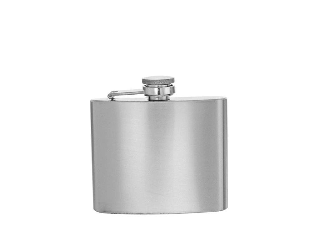 Nerezová placatka, objem 130 ml, stříbrné barevné provedení, šroubovací uzávěr.