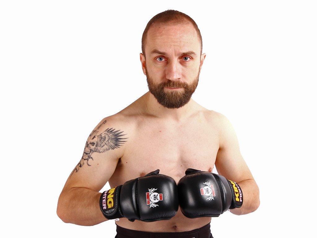 Tréninkové MMA rukavice vhodné pro Krav Maga. S volnými prsty, krytým palcem a bohatým polstrováním. Vyrobeno z kvalitní hovězí kůže. Ve velikosti M, L