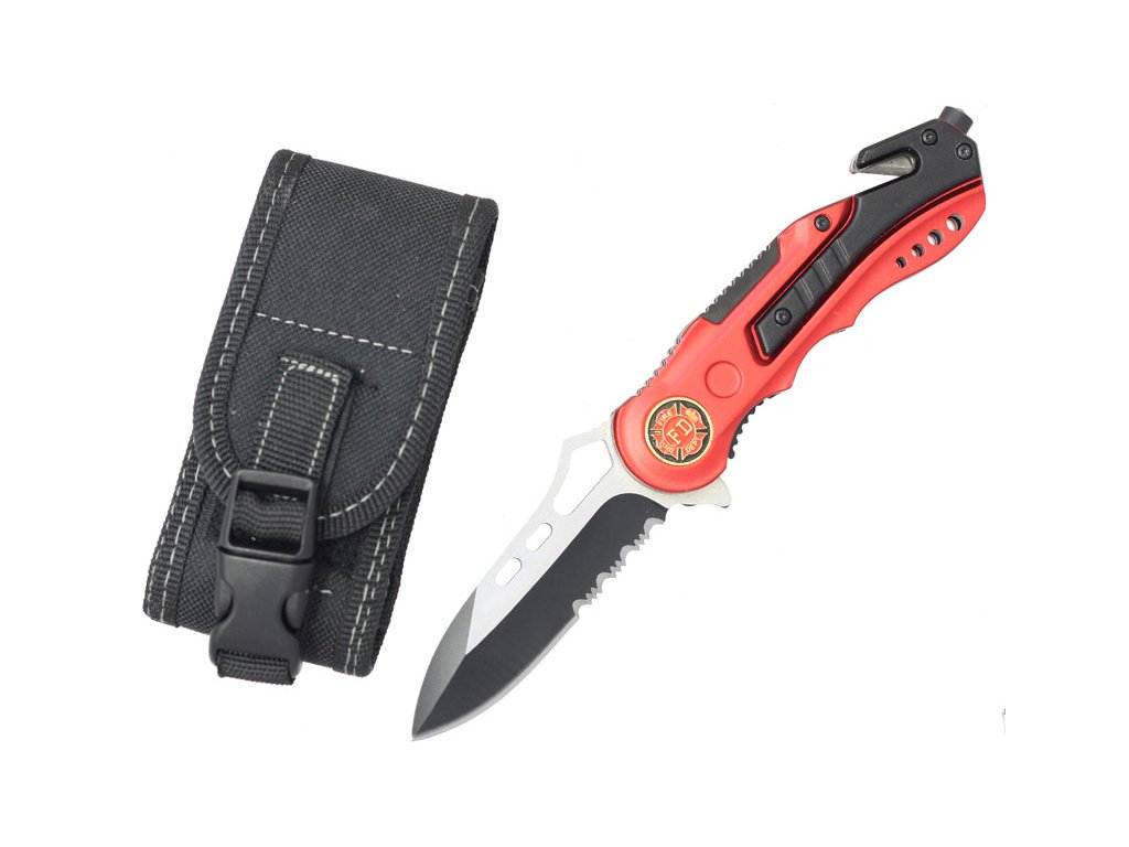 Záchranářský zavírací nůž Allbainox v červenočerném provedení. Čepel je vyrobena z nerezové oceli v černostříbrné barvě, ostří je částečně zoubkované. Nůž lze pohodlně otevřít jednou rukou pomocí flipperu nebo otvoru v čepeli. Čepel je v otevřeném stavu fixována pojistkou linerlock. Rukojeť je vyrobena z hliníku, je anatomicky tvarovaná a na hřbetní straně je protiskluzové rýhování pro zapření palce. Na konci rukojeti je řezač bezpečnostních pásů a kovový hrot na rozbíjení skla. Nůž je dodáván s černým nylonovým pouzdrem.Diskuze
