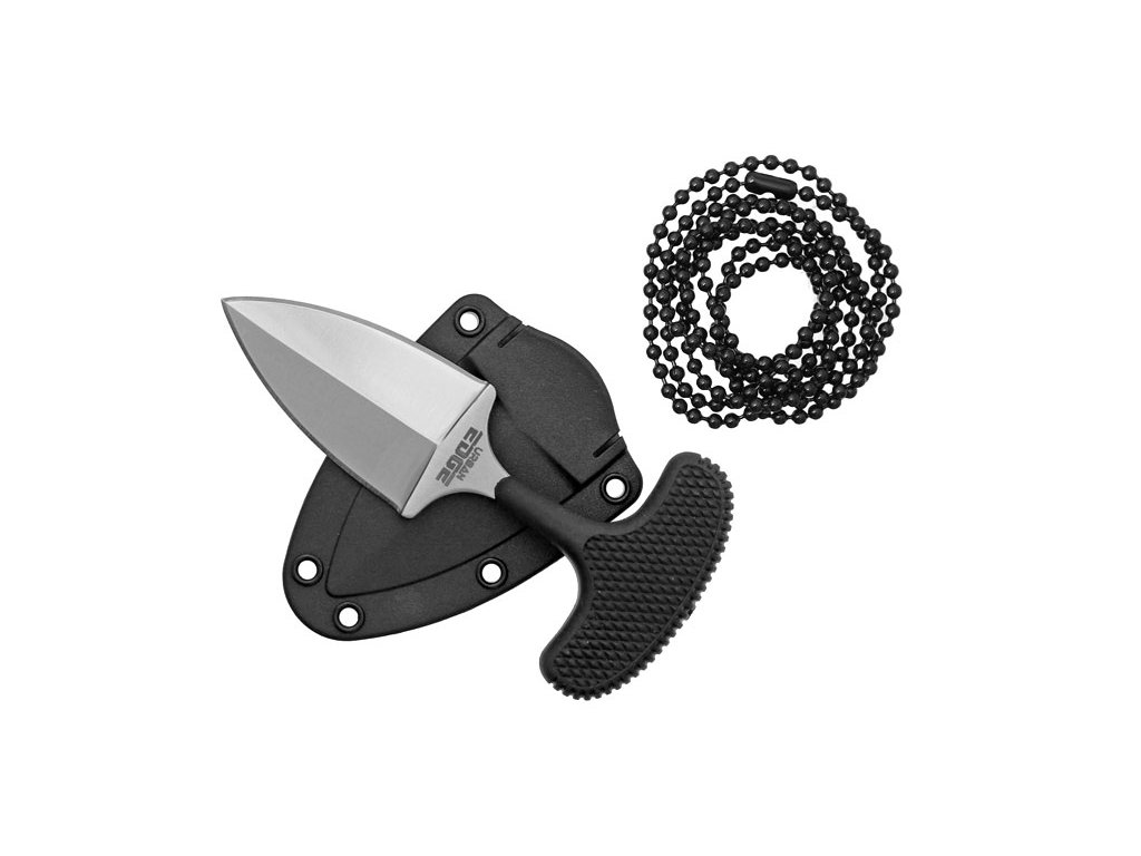 Nůž Cold Steel Urban Edge 43XL, tlačná dýka, oboustranně broušená čepel s hladkým ostřím, gumová protiskluzová rukojeť, plastové pouzdro s řetízkem pro zavěšení na krk.