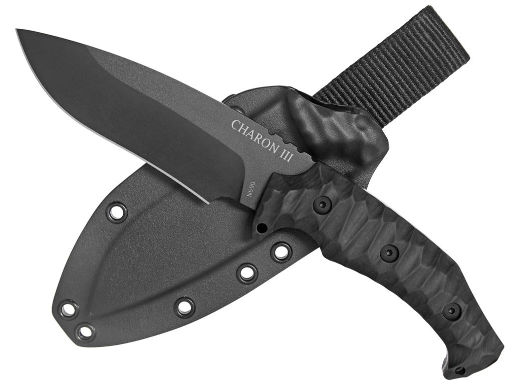 Univerzální odolný nůž Nůž z dílny českého nožíře Radima Dachse, Charon III. Tento model má univerzálně použitelný, prověřený tvar čepele s lehce vyklenutým ostřím. Využijete ho všude, od bojového nasazení až po bushcraft. Moderní výrobní postupy, kvalitní materiály a perfektní zpracování zaručují, že vám tento nůž bude věrně sloužit a můžete se na něj spolehnout i v náročných podmínkách. Technické údaje Nůž je vyroben z jednoho kusu vynikající kobaltové oceli N690 zakalené na tvrdost 57-58 HRC s klínovým výbrusem ostří, to noži dává maximální odolnost. Nůž má nejmodernější povrchovou úpravu DLC Cerakote, což je keramický potah, který má oproti běžným povrchovým úpravám výrazně lepší vlastnosti (vyšší ochrana proti korozi, lepší oděruvzdornost a chemická odolnost). Střenky jsou vyrobeny z materiálu fundermax v černé barvě s výrazným rýhováním ve stylu obsidian, rukojeť je perfektně anatomicky tvarovaná. Na konci rukojeti je úderový hrot. Nůž je dodáván s variabilním kydexovým pouzdrem.Diskuze