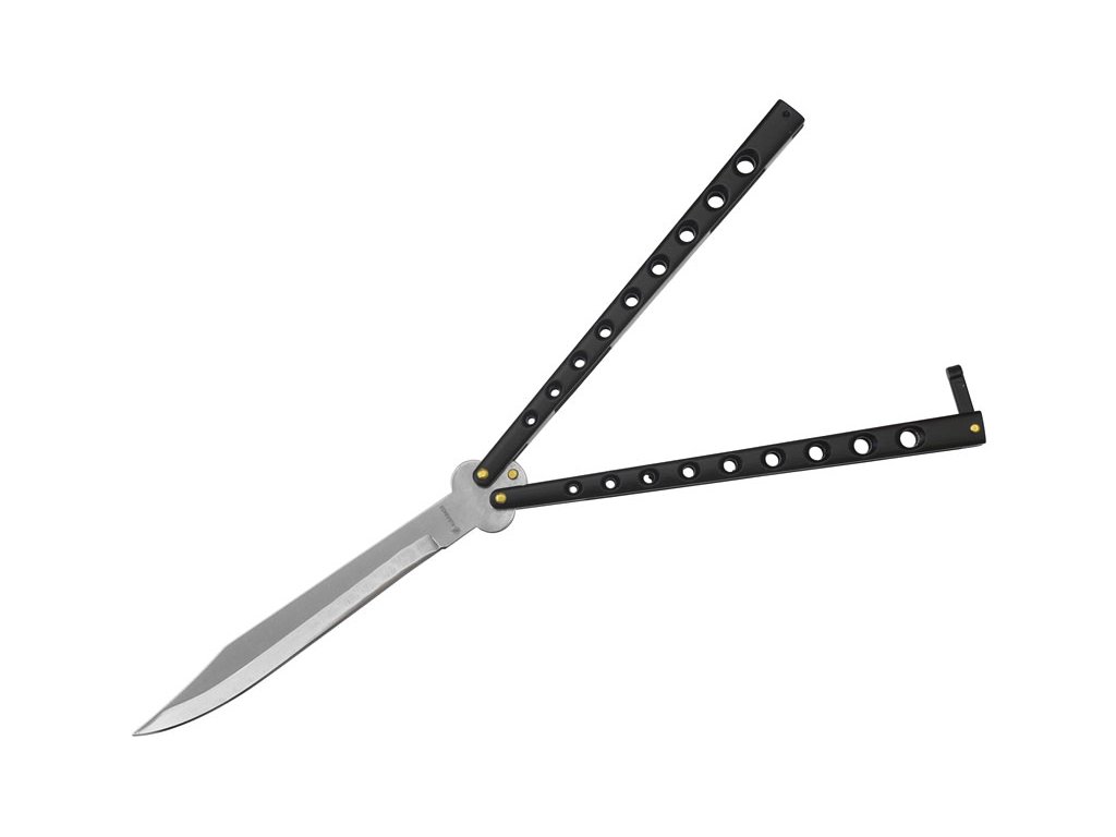 Největší motýlek z naší nabídky Motýlek nezvykle velkých rozměrů od firmy Albainox. Nůž má klasický motýlkový design s rukojetí s kruhovými otvory. Zajímavý model pro všechny příznivce tohoto typu nožů. Technické údaje Čepel je vyrobena z nerezové oceli se zrcadlově lesklou povrchovou úpravou. Rukojeť je kovová v černé barvě. Na konci rukojeti je zajišťovací západka. Všechny spoje jsou u tohoto modelu nýtované.Diskuze