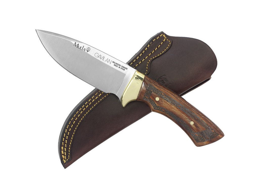 Lovecký nůž Gavilan od španělské firmy Muela manufacturas. Oblejší tvar čepele, zlatá záštita a dřevěná rukojeť s gravírovaným vzorem dělají tento nůž velmi elegantním. Součástí je pěkné kožené pouzdro.Diskuze