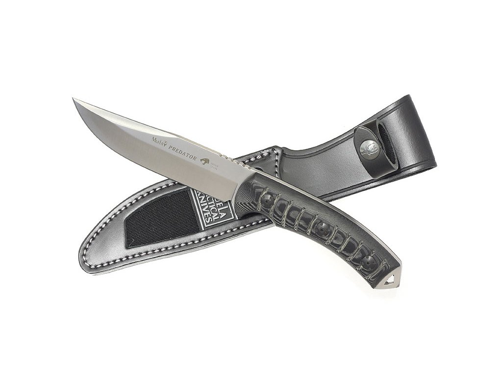 Větší ze dvou nabízených velikostí nožů modelové řady Predator od španělské firmy Muela. Je to univerzální, velmi robustní a odolný nůž, který zvládne i náročné práce a to díky tzv. full tang konstrukci, což znamená, že je vyroben z jednoho kusu oceli. V tomto případě se jedná o molybden vanadiovou ocel o tvrdosti 57 - 61 HRC. Střenky jsou vyrobeny z mikarty, anatomicky tvarované a zdrsněné vroubkováním. Začátek hřbetní části čepele je též opatřen vroubky, pro úchop s předsazeným palcem. Na konci rukojeti je otvor pro provlečení šňůry a vystupující kovová část tvoří hrot. Nůž je dodáván s pouzdrem v kombinaci kůže a nylonu.Diskuze