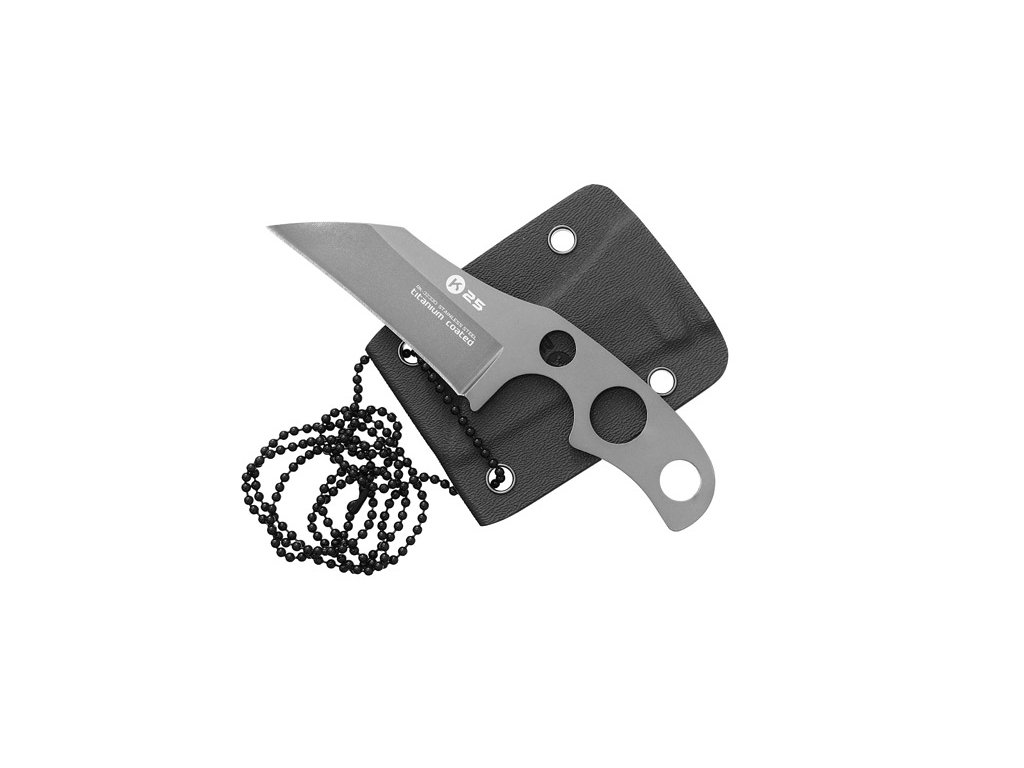 Malý nůž na krk RUI Tactical 32330 K25, celoocelová konstrukce, titanová povrchová úprava, závěsné kydexové pouzdro s kuličkovým řetízkem.