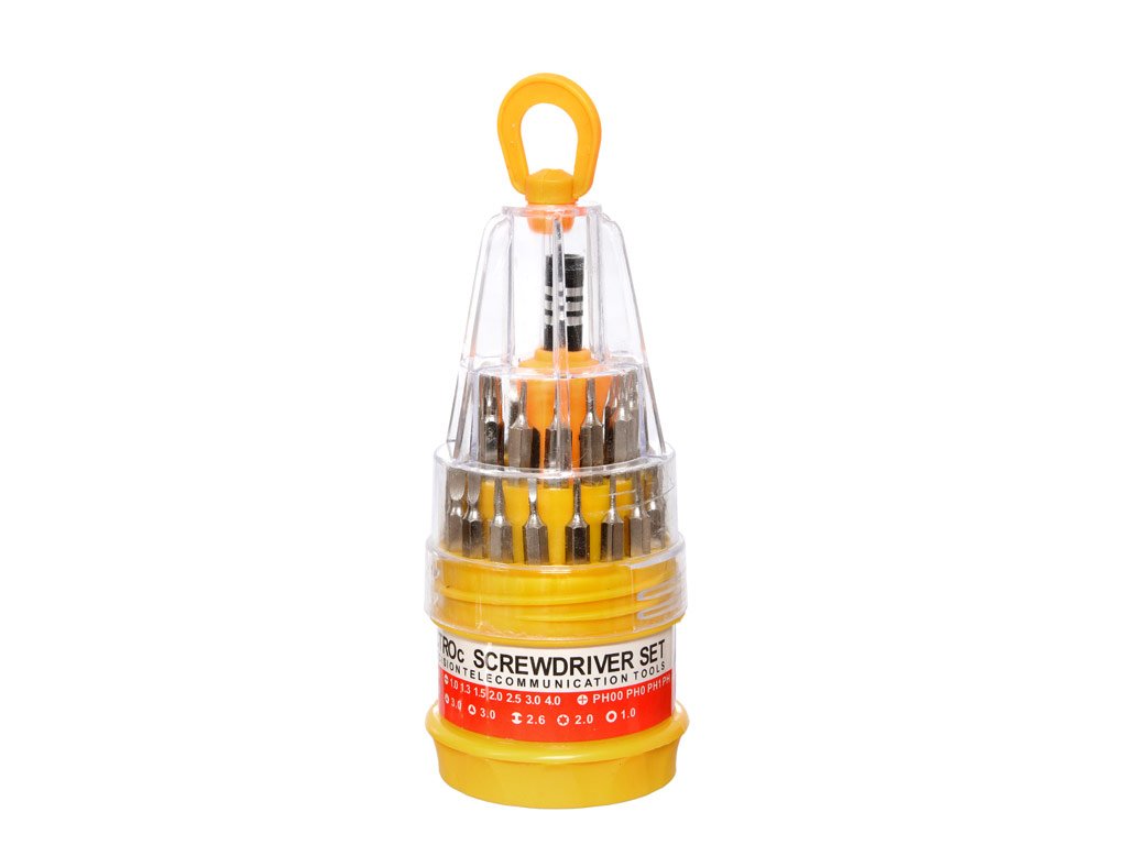 Praktická sada šroubováků Praktická sada mini šroubováků na nejběžnější druhy šroubků, používaných v jemné mechanice. Mimo jiné jsou použitelné na servis zavíracích nožů. Sada obsahuje 30 kusů ocelových bitů a plastovou rukojeť s fixačním magnetem, bránícím vypadnutí bitu. Vše je přehledně uloženo v plastovém uzavíratelném stojanu.Diskuze
