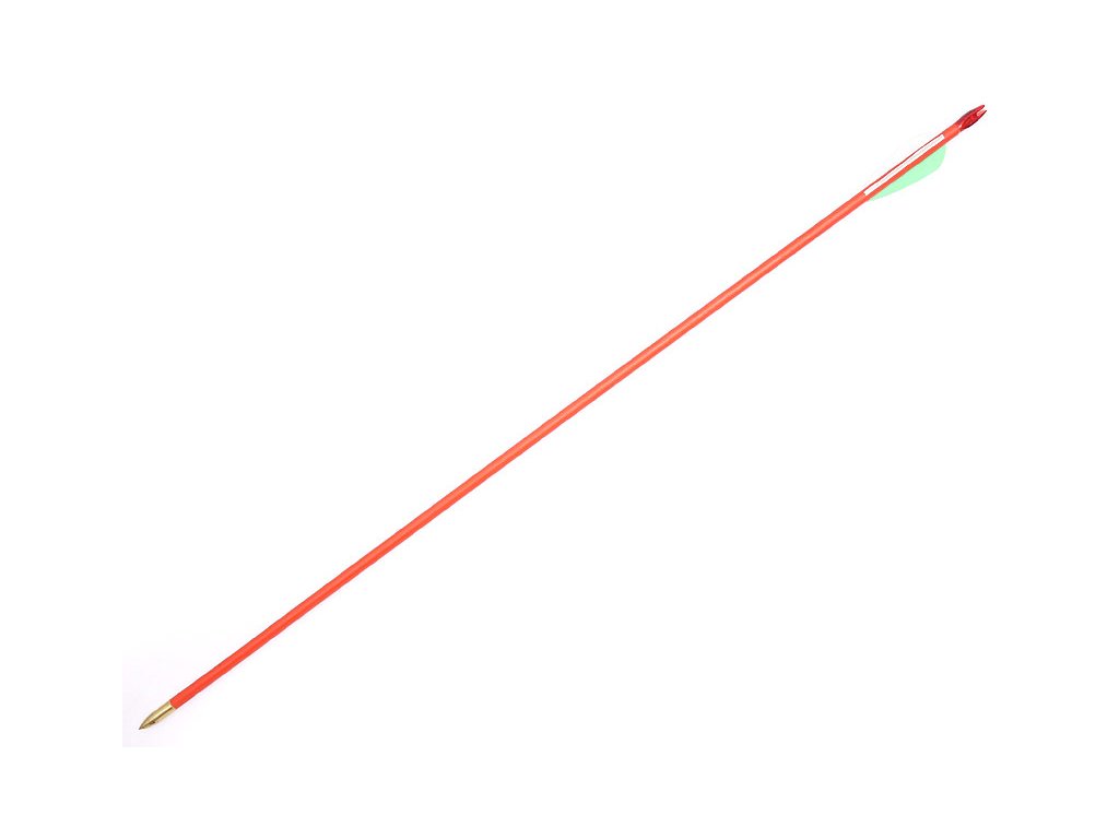 Šíp z cedrového dřeva v červené barvě o délce 77 cm s kovovým hrotem.
