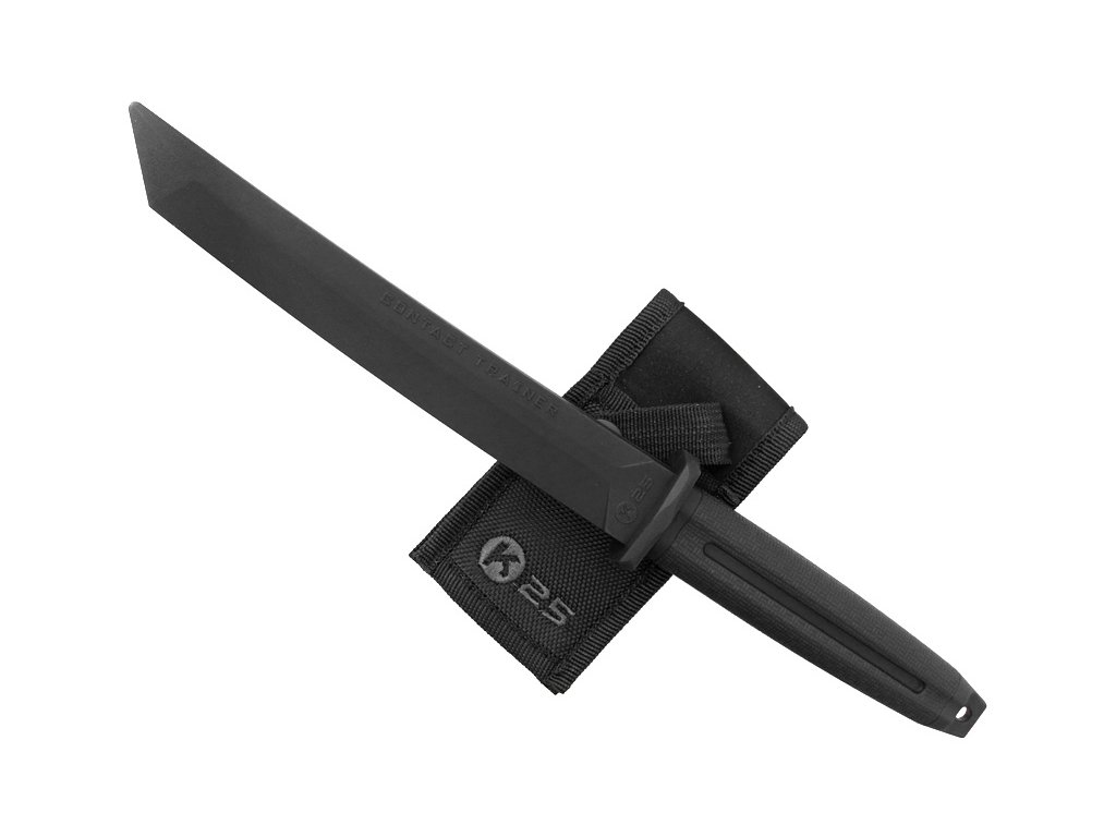 Tréninkový nůž typu tanto Velký tréninkový nůž RUI Tactical - K25, určený pro bezpečný kontaktní nácvik boje s nožem a různých modelových situací. Má tvar čepele typu tanto, je vyroben z černé tvrzené gumy a součástí dodávky je krátké nylonové pouzdro.Diskuze