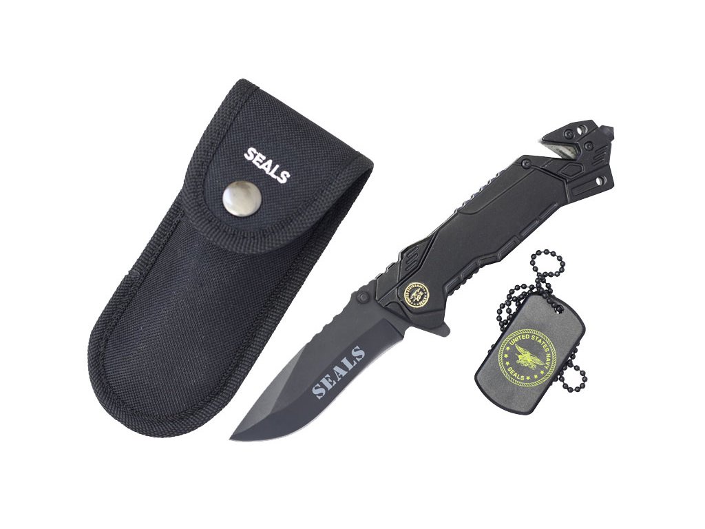 Záchranářský nůž od firmy Martinez Albainox ze série věnované záchranným a ozbrojeným složkám, přičemž tento model je inspirován vojenským útvarem zvláštních sil amerického námořnicva SEALS. Jako doplněk k nožům z této série je kovová destička na řetízku se symbolem organizace, ke které nůž patří. Nůž má celokovovou konstrukci, čepel je černěná s nápisem SEALS, vyrobená z nerezové oceli a je opatřena flipperem a oboustranným kolíčkem pro pohodlné otevírání jednou rukou. Nůž je opatřen pojistkou linerlock. Rukojeť je hliníková v černém barevném provedení. Na konci rukojeti je řezač pásů a kovový hrot na rozbíjení skla. S nožem je dodáváno černé nylonové pouzdro.Buďte první, kdo napíše příspěvek k této položce.