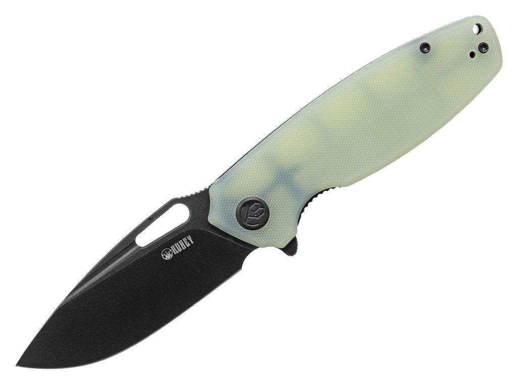 Větší zavírací nůž Zavírací nůž od firmy Kubey, který svou velikostí vyhovuje spíš větší chlapské ruce. Má však štíhlý profil a díky tomu se dá v pohodě nosit v kapse a nijak nepřekáží. Netradičně pojaté jsou na tomto noži jeho střenky, které jsou vyrobeny z lehce průsvitného matriálu. Je to spolehlivý nástroj z kvalitních materiálů, který vám bude dlouho sloužit. Technické údaje Čepel je vyrobena z vynikající nástrojové oceli D2, která výborně drží ostří, má však nižší korozivzdornost, je proto třeba o ni lépe pečovat. Pro otevření jednou rukou stačí zatlačit na flipper, nebo použít otvor v čepeli. Díky uložení čepele na kuličkovém keramickém ložisku je její chod krásně hladký. V otevřené poloze je čepel fixována pojistkou linerlock. Rukojeť je tvořena ocelovými příložkami na kterých jsou protiskluzové střenky z průsvitné G10 v mentolové barvě. Nůž je opatřen přemístitelným kapesním klipsem.Diskuze