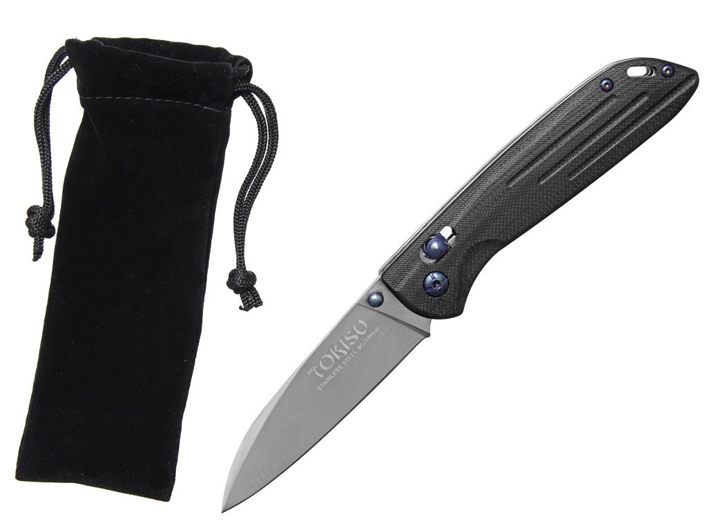 Kompaktní zavírací nůž Tokisu 18656, jednoruční otevírání, čepel na kuličkovém ložisku, střenky z G10, pojistka axislock, kapesní klips, úložný sáček.
