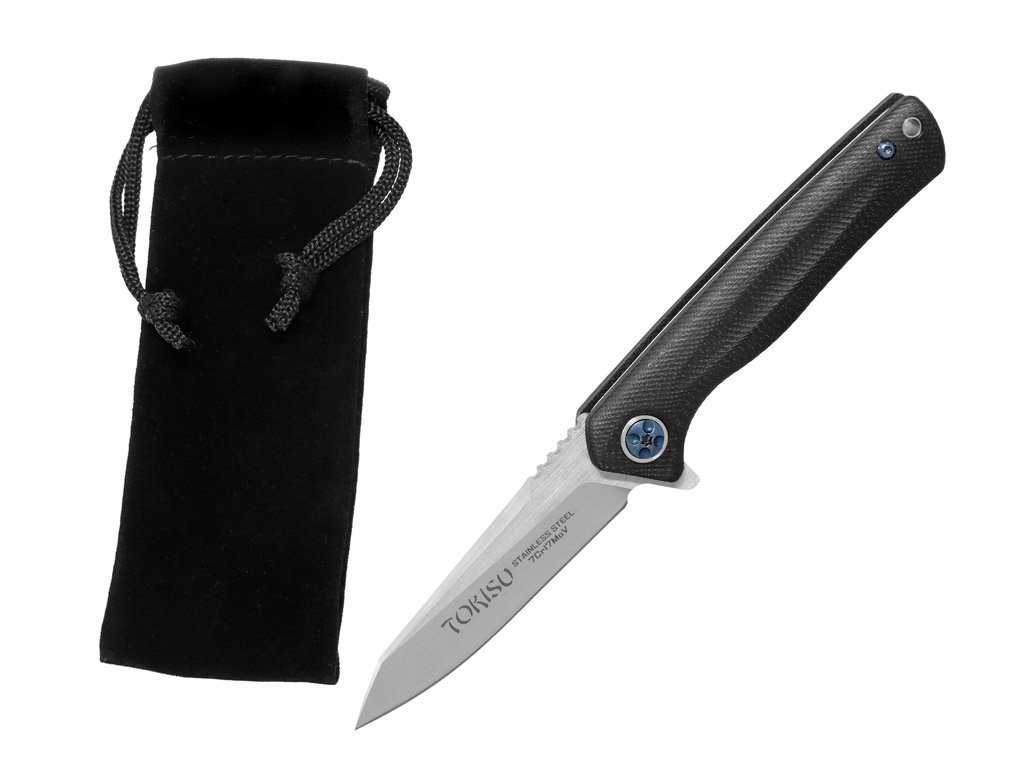 Zavírací nůž Tokisu 18769, jednoruční otevírání, protiskluzová rukojeť z G10, pojistka linerlock, kapesní klips, nylonový sáček.